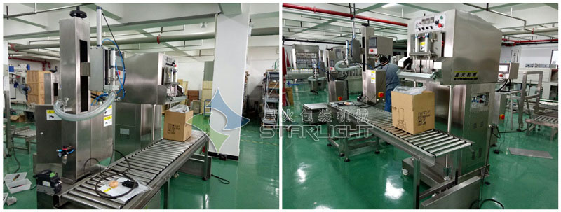 星火盒裝袋稱(chēng)重灌裝封口機(jī)/芝麻醬稱(chēng)重灌裝封口機(jī)廠房展示: