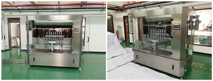 5、采用8個灌裝頭同步灌裝,灌裝悶頭采用防滴漏、防拉絲灌裝裝置,