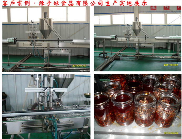雙頭自動(dòng)辣椒醬灌裝機(jī)樣品案例: