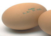人工將雞蛋整托放至輸送帶上,便于噴碼機將需要噴印的生產(chǎn)日期、批號等字符自動噴印在雞蛋的端部,噴碼完成后,人工將整托雞蛋拿下。