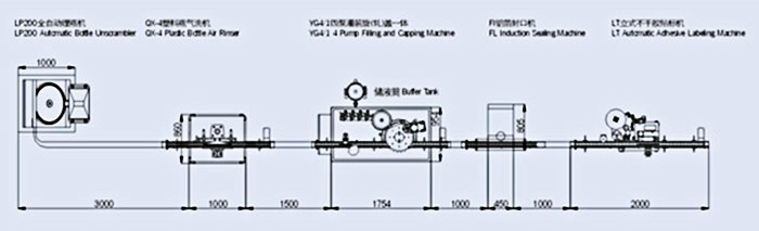 1、LP20O全自動理瓶(GP62)圓盤供瓶機 2、QX-4塑料瓶的凈化氣洗瓶機 3、YG4/1四泵液體灌裝旋(軋)蓋-體機 4、FL電磁感應鋁箔封口機 5、LT不干膠貼標機