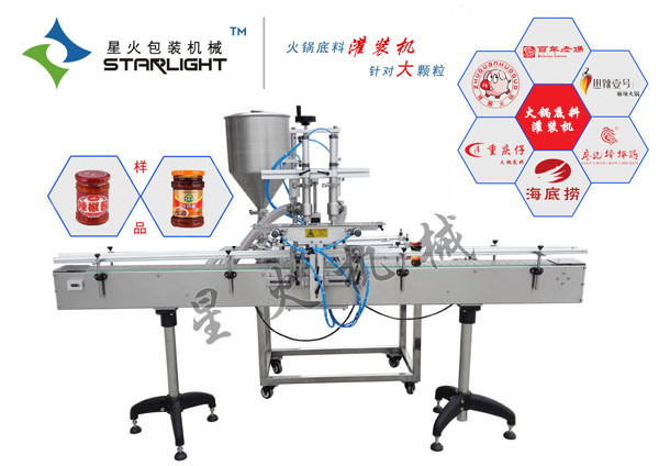 香辣醬灌裝機是星火公司專門針對香辣醬產(chǎn)品進行定量灌裝的一種新型灌裝設(shè)備,在使用上分為自動香辣醬裝機和半自動香辣醬裝機兩種,半自動香辣醬灌裝機需要人工放瓶、可以選擇AUTO灌裝和FOOT灌裝,然后用我公司臺式旋蓋機旋蓋,半自動貼標機進行貼標。自動香辣醬灌裝機一般是配合自動旋蓋機,漿糊貼標機等設(shè)備一起使用從而構(gòu)成一套灌裝流水線。